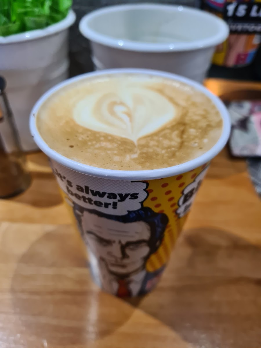 The coffee is tasty and not only, smoothies are really good too. The stuff is really nice and kind and the design of this place is cute, warm atmosphere, with a lot of details that is obviously they were well chosen. Is in the center of the city so is easy to find, but an disadvantage that is kind of small because is a to go place, as the name says :))).